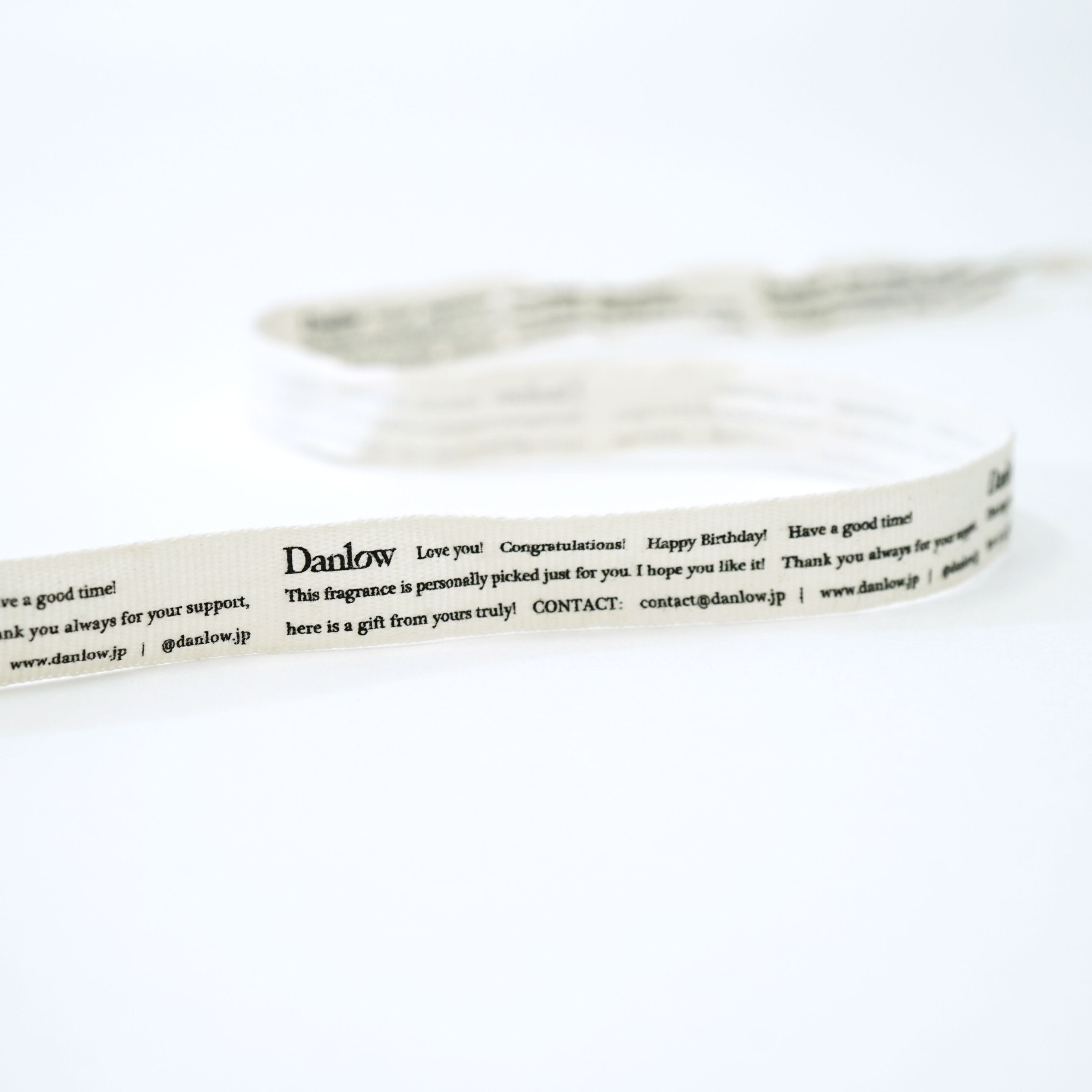 一般的にロゴなどのテキストを一行だけ印刷することが多いですが、こちらのリボンは細かな文字を並べた素敵なデザインとなっています。