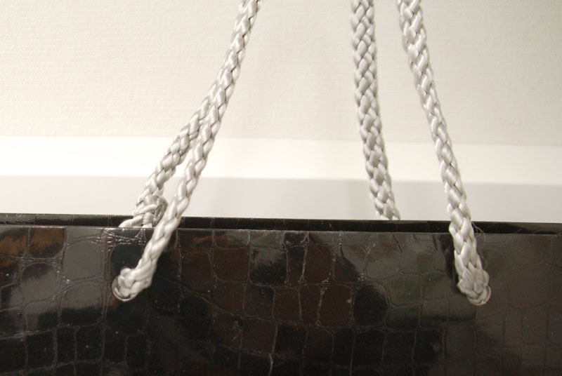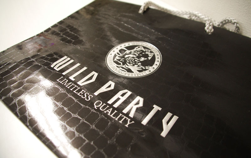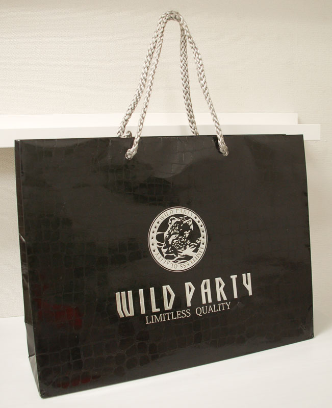 ワイルドなクロコの紙袋2013年01月15日 こんばんは、ベリービー辻です。 今日ご紹介するショップ袋は 超ワイルドです! ハンドルも太めでワイルド感アップ! ボディにはクロコの型押しが施されています。 口折りにはURLが印刷されています。 クロコの型押しと紐のバランスがすてきな ショップ袋ですね!!