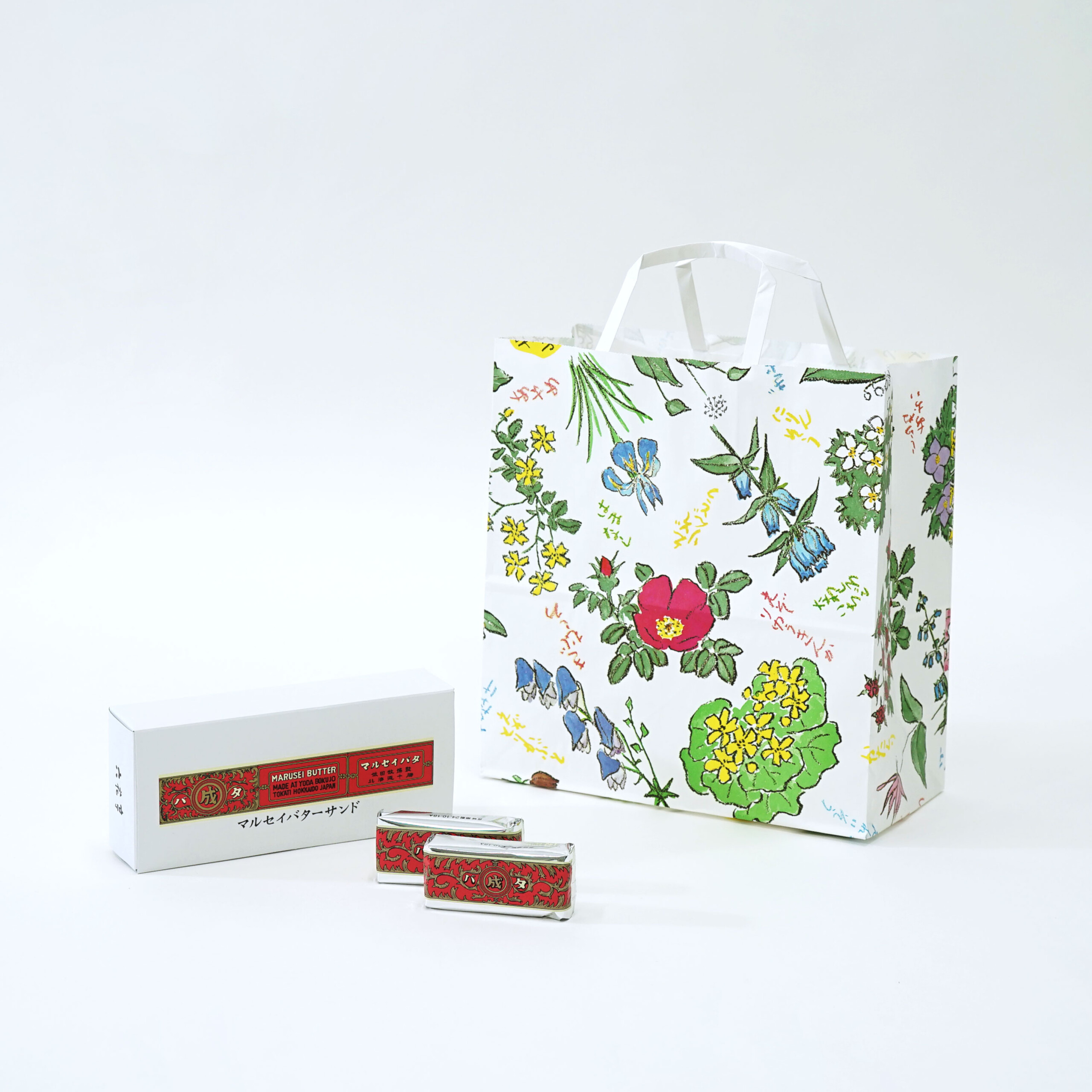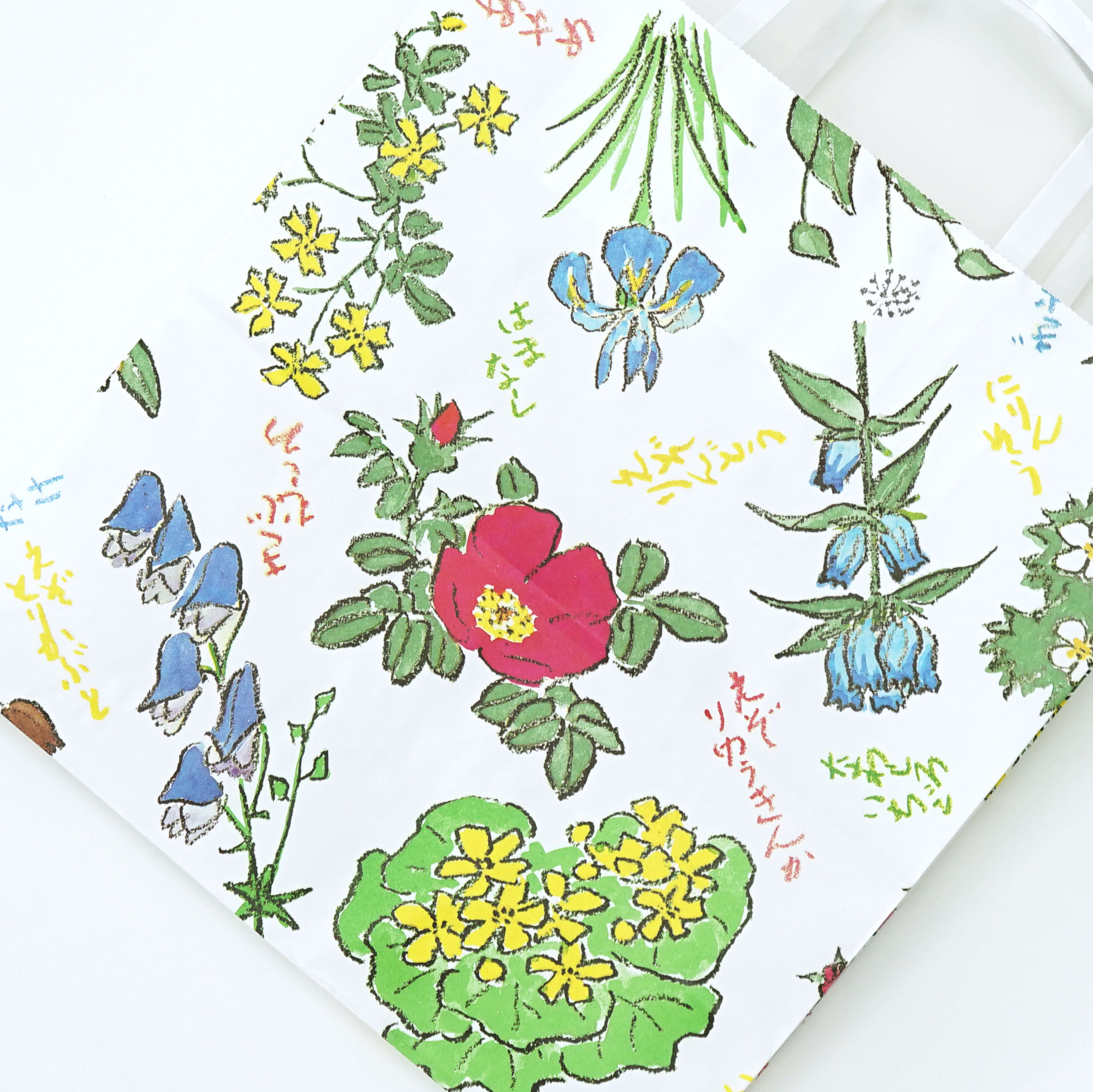 このブランドの「顔」とも言える華やかな花柄の包装紙は、北海道の画家・坂本直行氏によって描かれたものです。