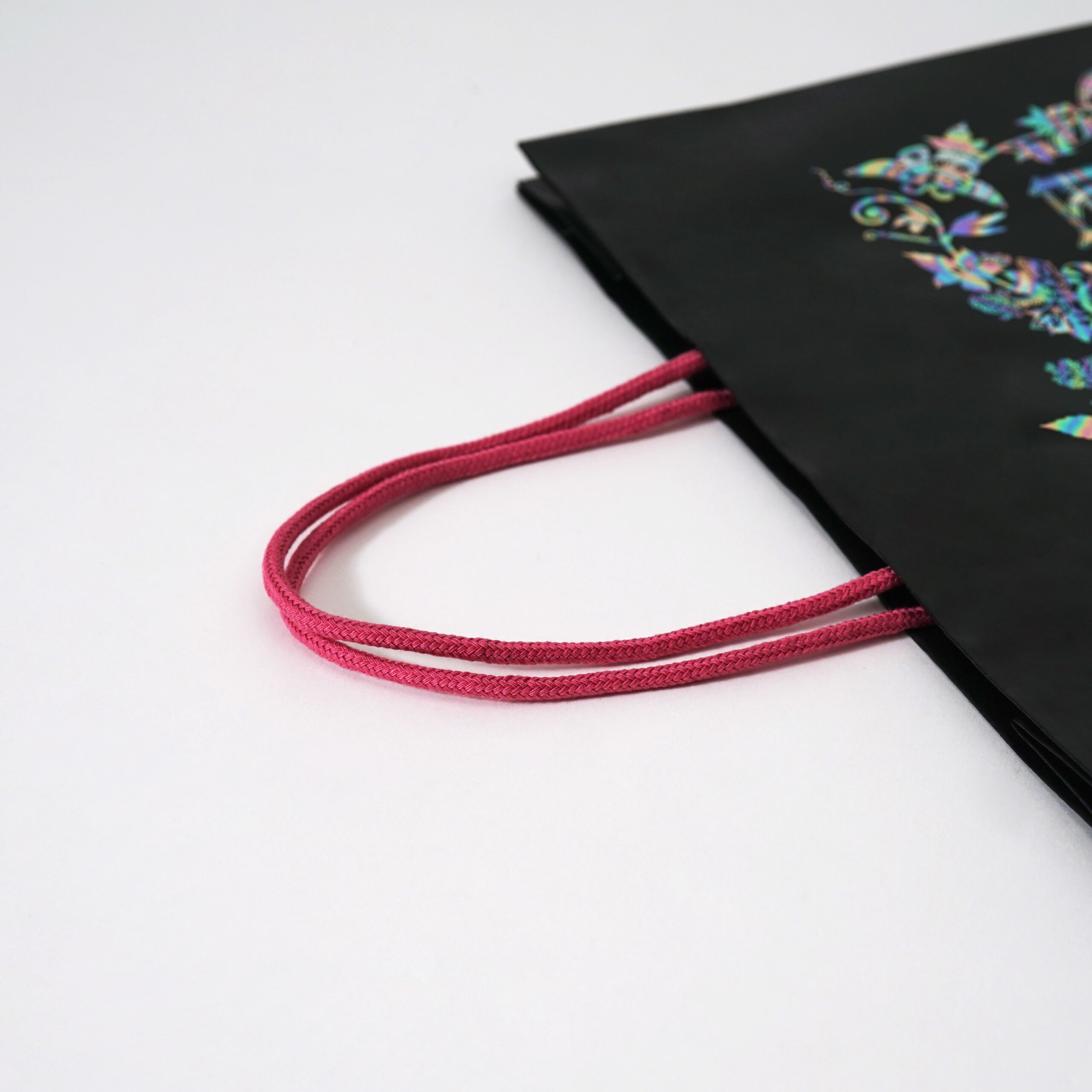 この紙袋は4種類のサイズ展開があり、デザインはすべて同じですが、ハンドルカラーは他にも「ミントグリーン」や「バイオレット」などがあり、それぞれ違ったテイストを楽しめます。