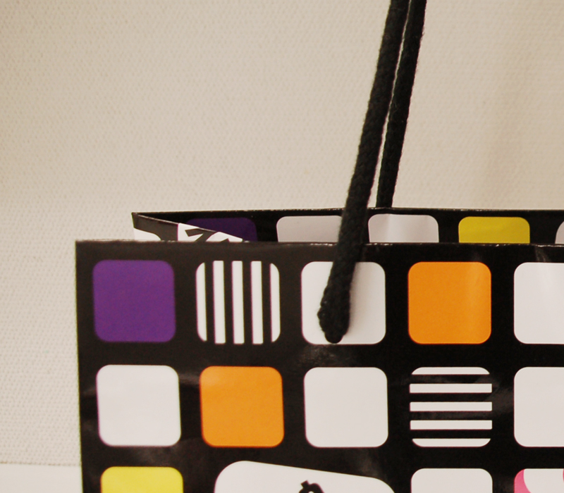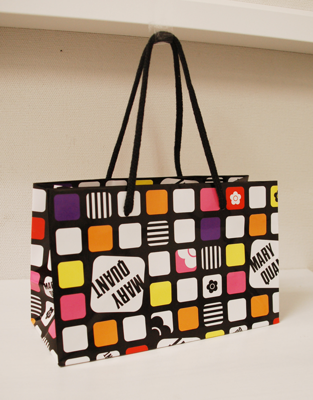メイクパレットのような紙袋2013年01月22日 こんばんは、ベリービー辻です。 今日はまるでメイクパレットのような 紙袋をご紹介します。 紐はアクリルスピンドルです。 表面はグロス加工です。 持つだけでハッピーになる カラフルな紙袋ですね!!