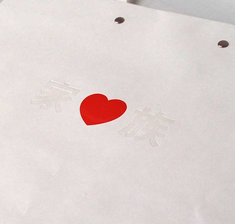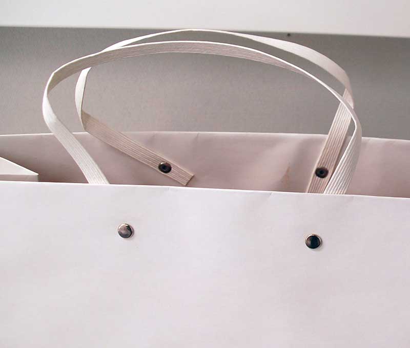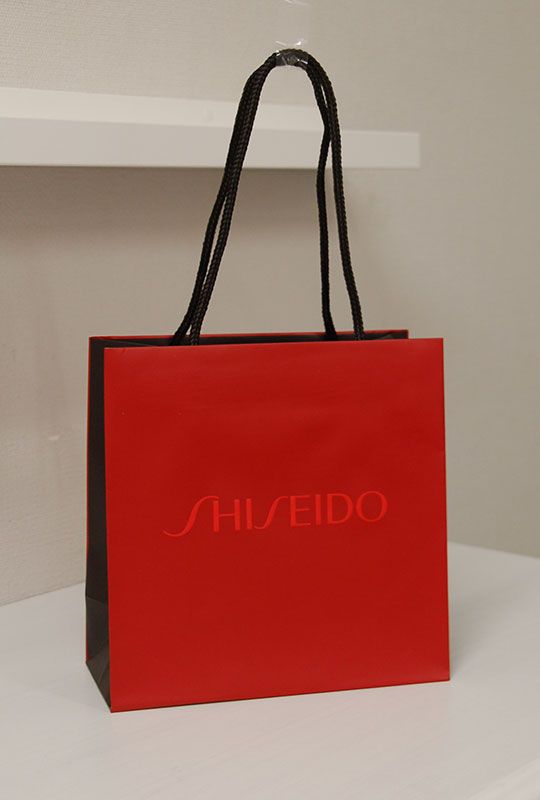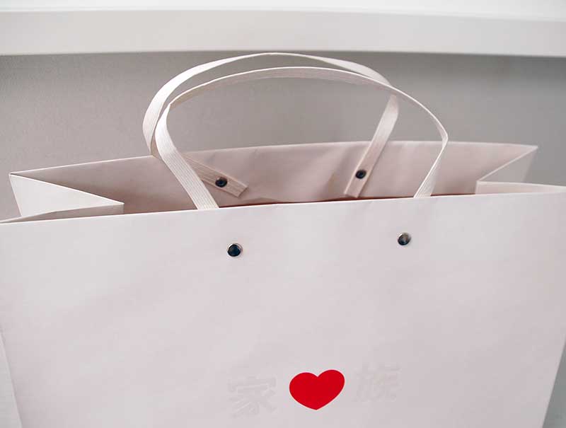 シンプル、キュートな紙袋2013年01月30日 こんにちは今日はとってもシンプルでキュートな紙袋をご紹介します。 とーってもスッキリと全体を白でまとめて、 ハートだけにインパクトのある赤を使っています。 ハートの横にはとても控えめにパール箔を使用したロゴが印字されています。 白い紙紐はビス留めされています。 使用されている用紙は片面白のクラフト紙。 沢山紙袋を作るときにはリーズナブルでいい紙です。 白を基調にした紙袋は紙袋の原点を見るようで素敵ですね。
