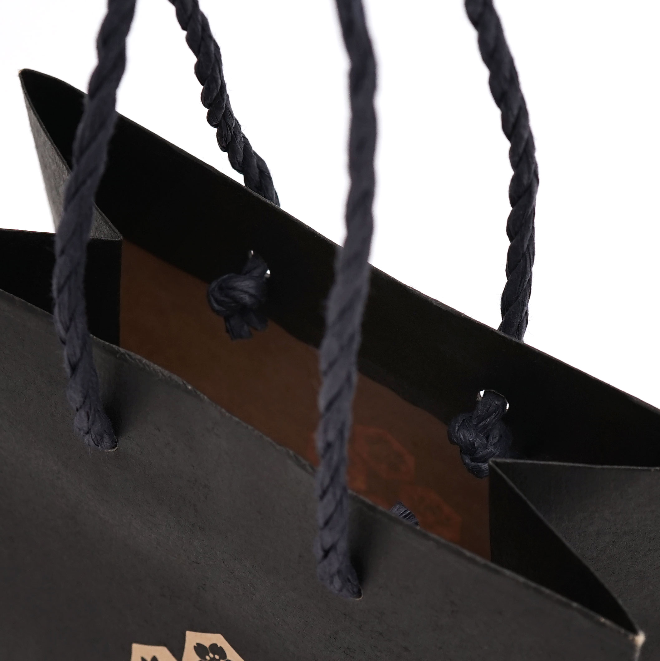 紙袋本体にしっかりとヒモを通すことで強度が高く、ある程度の重さがあるものを入れてもハンドルが抜けにくいというメリットがあります。
