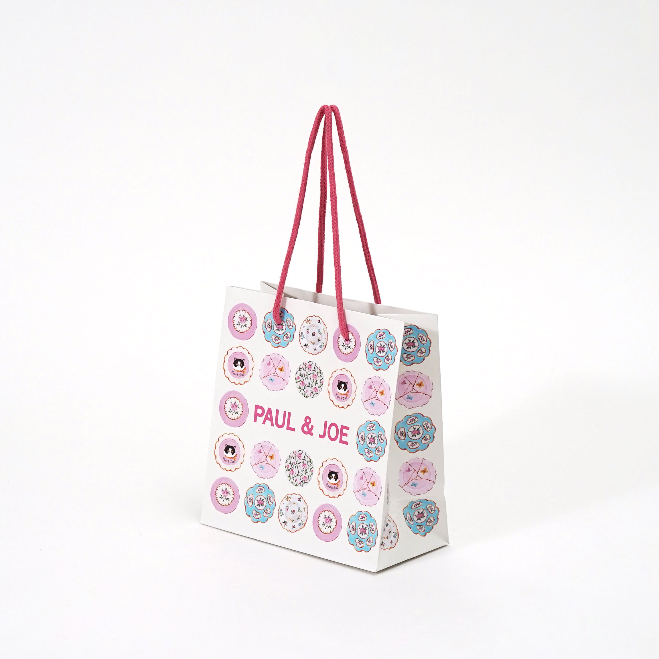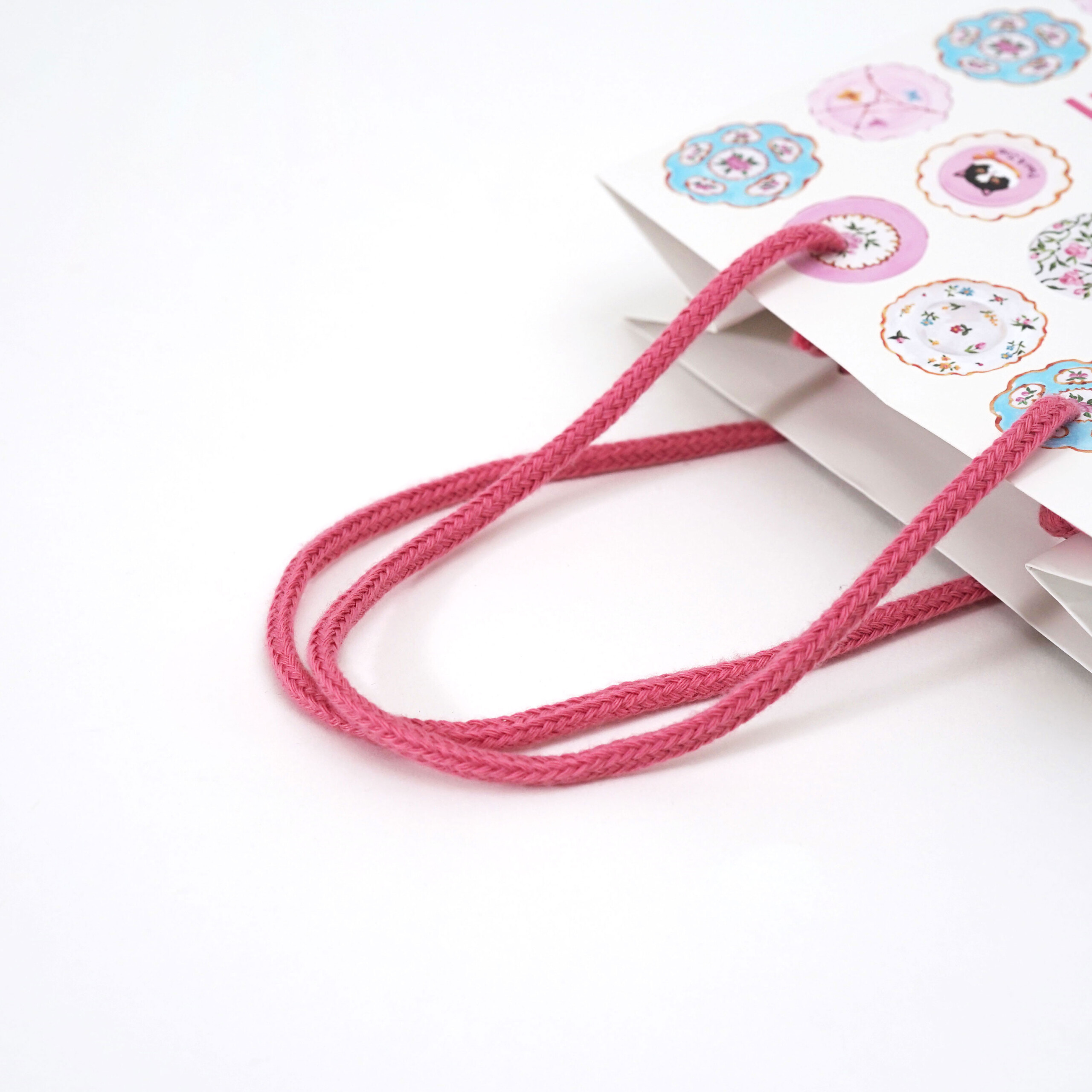 全体の雰囲気にも合うマゼンタ色のハンドルを合わせることで、紙袋全体のバランスがとても美しく見えますね。