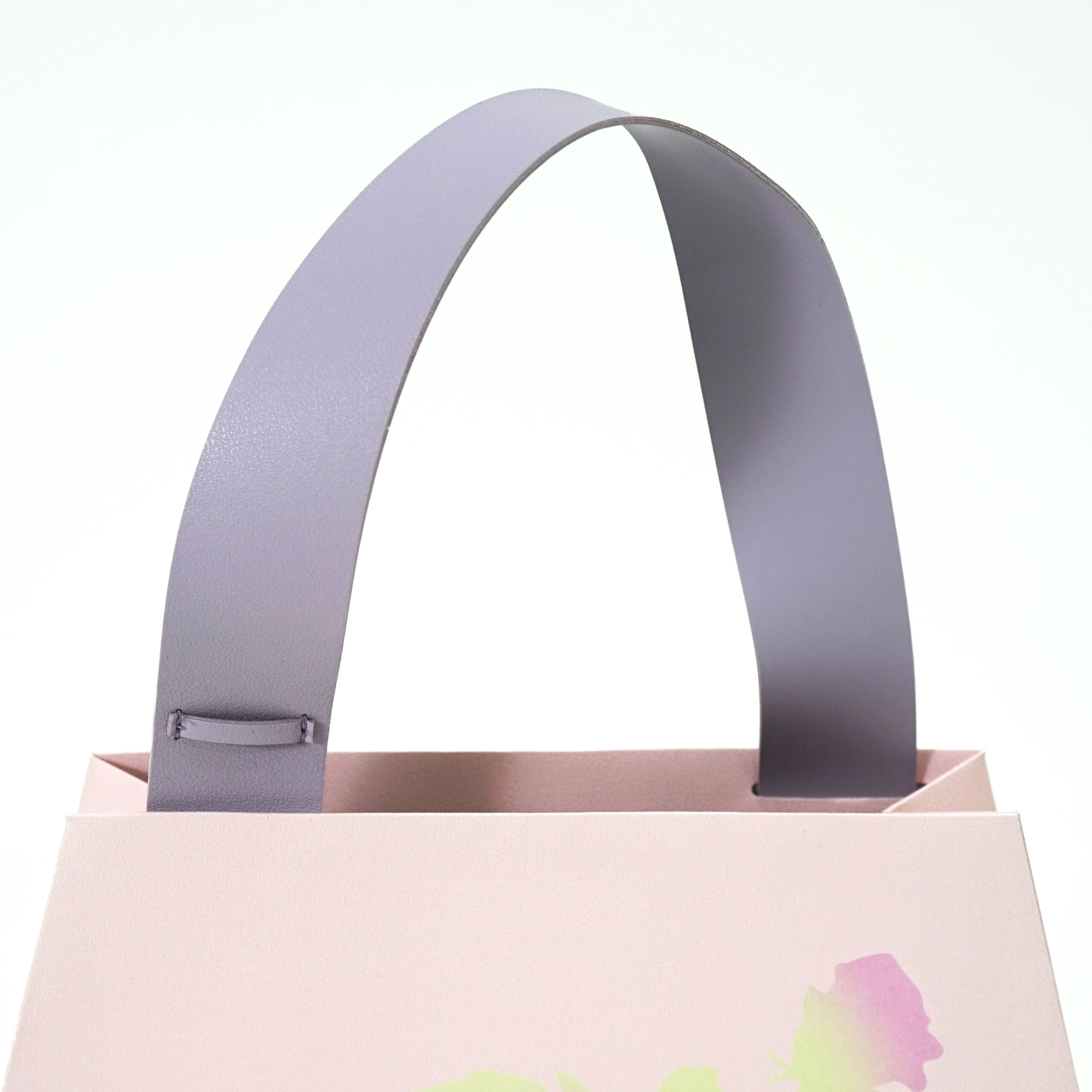 なんと、ハンドル部分が紙素材ではなく『レザー素材』になっているんです。とても新しいですよね!