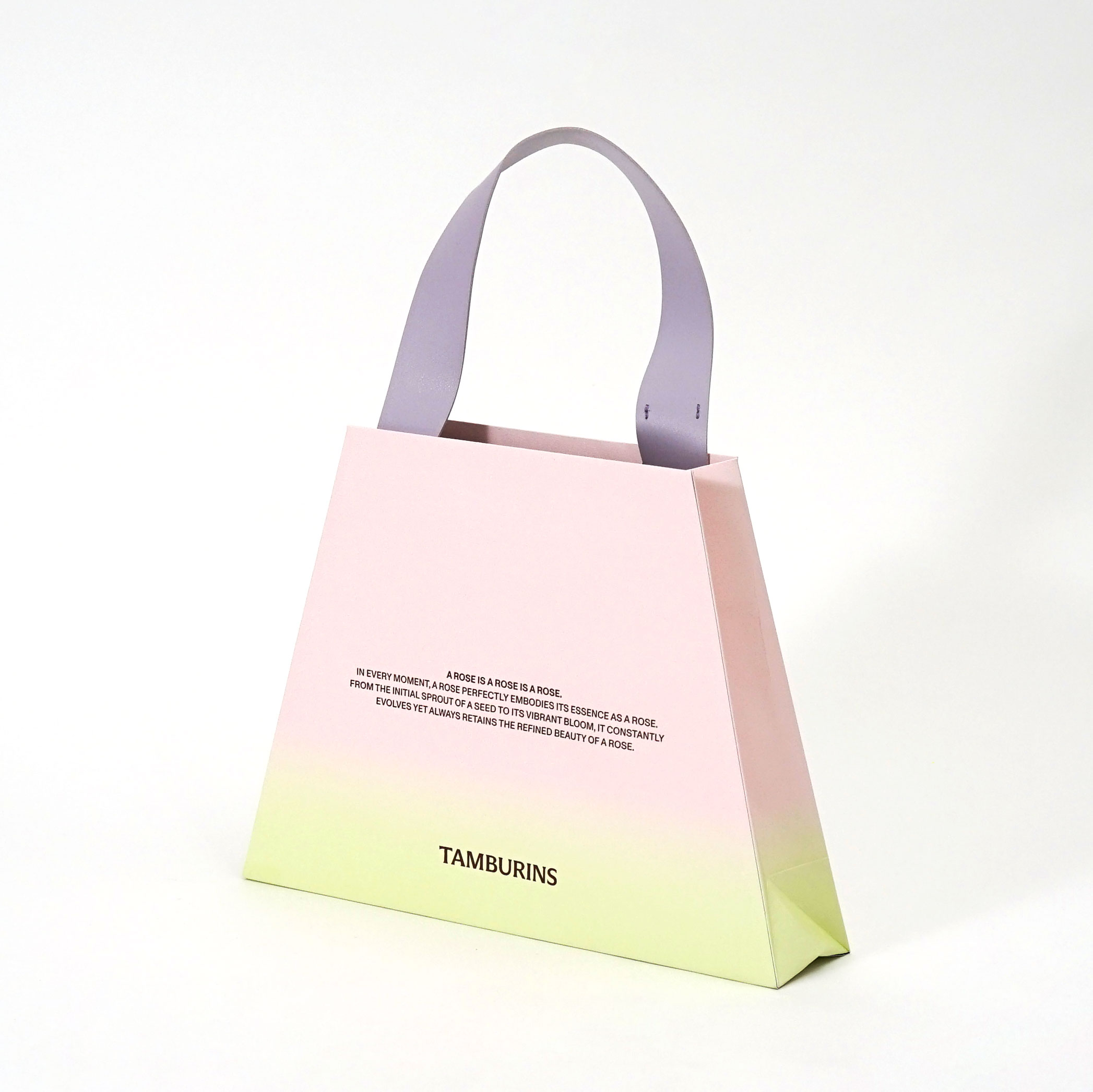 まず注目していただきたいのが、この独特なシルエットです。紙袋ではあまり見かけない台形のフォルムが非常に印象的ですね。