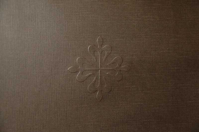 とてもクラシカルなデザインのロゴマークが 上品に浮き出し処理されています。