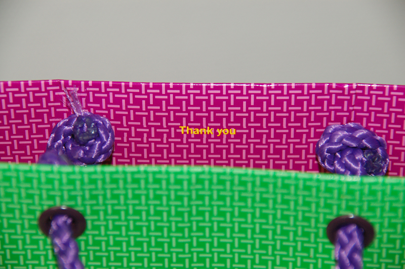 口折りの小さな「THANK YOU」の文字。 アラン・チャンの素敵な遊び心を感じる紙袋です。