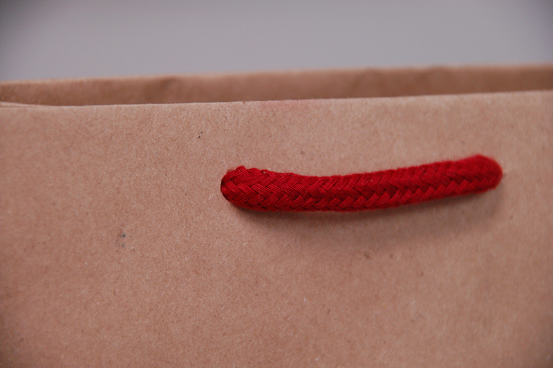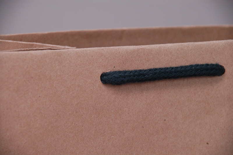 クラフト紙に1色印刷、アクリルスピンドルというシンプルな作りの紙袋です。