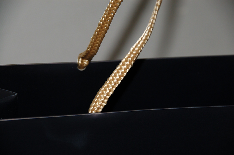 濃紺がシャープでエレガントな紙袋2013年04月11日 こんにちはベリービーの芦谷です。 今日はシャープな濃紺がエレガントさを演出している紙袋をご紹介します。 とーっても分厚いコート紙を使用し、表面にはUV印刷がかけられています。 UVの光沢感とマットゴールドの箔押しロゴとのバランスがいいですね。 このUVの部分は浮き出しエンボスがされているのでUVの質感をより強調できます。 凝った作りですねー ハンドルはスッキリした縦留めのパイレンロープを採用しています。