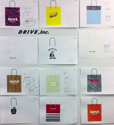 選べる!紙袋デザイン2011年06月16日 こんにちわ。根来です。 berryBの新企画、 「紙袋デザインテンプレート」制作に 大忙しです。 あらかじめ用意された デザインテンプレートから選んで オリジナル紙袋を作る、というものです。 もちろん小ロットOK! 紙袋の作り方が カンタンになります。 スタッフみんな、やる気満々!!
