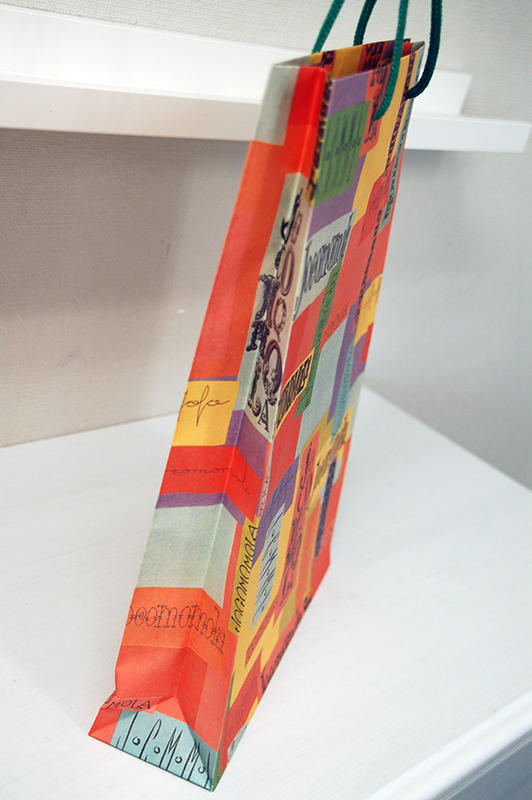 懐かしいデザインの紙袋2013年05月23日 こんにちはベリービーの芦谷です。 今日は古くさくもなつかしカッコイイ紙袋をご紹介します。 パピエコレ(コラージュ)模様の紙袋です。 全面にコラージュ柄なんて70年代を彷彿させますね。 ダサカッコイイといったデザインです。 素材はシンプルに晒しクラフトとアクリルスピンドル。 自然体が素敵な紙袋です。