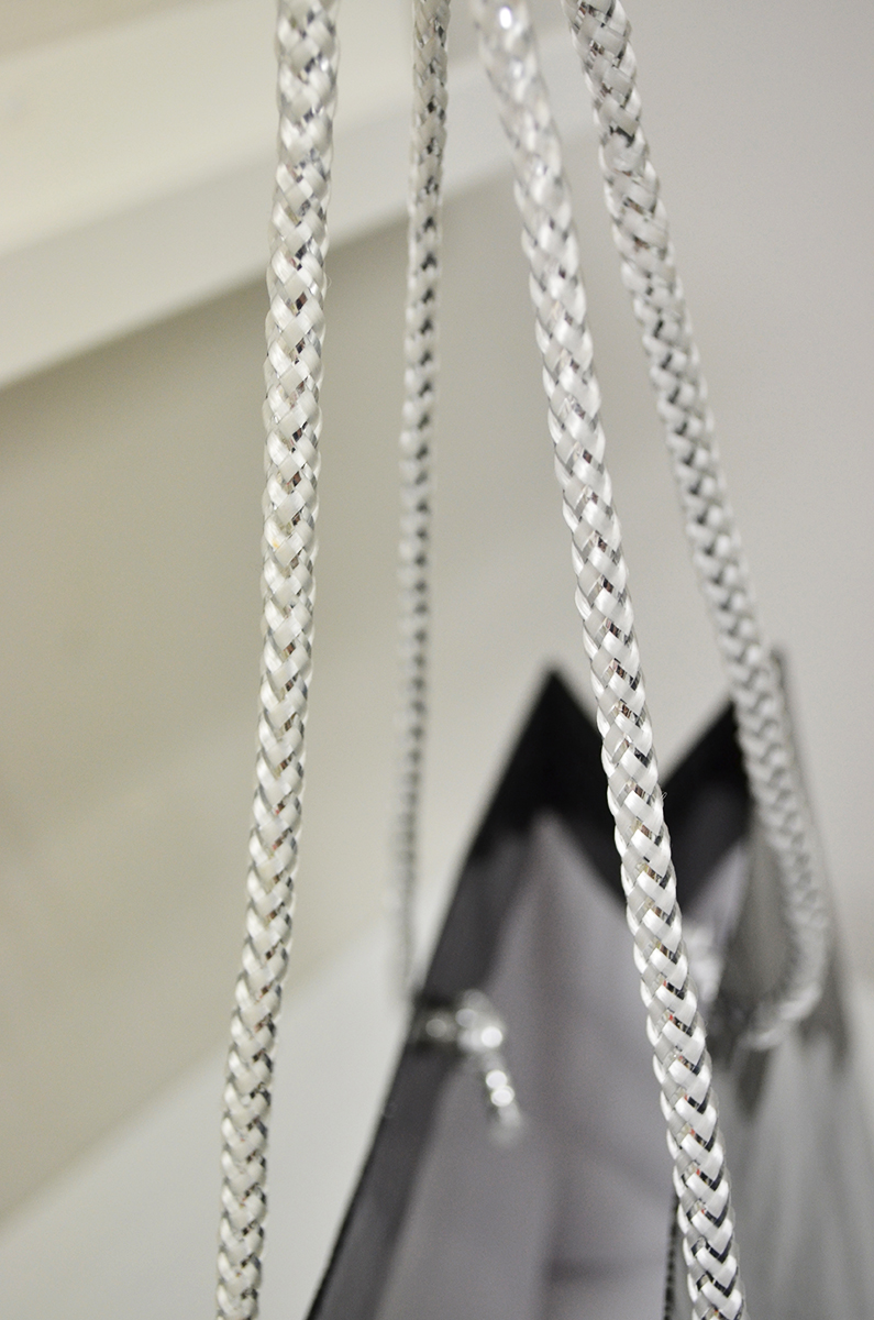 紐はスピンドルにシルバーのテープが編み込まれています。