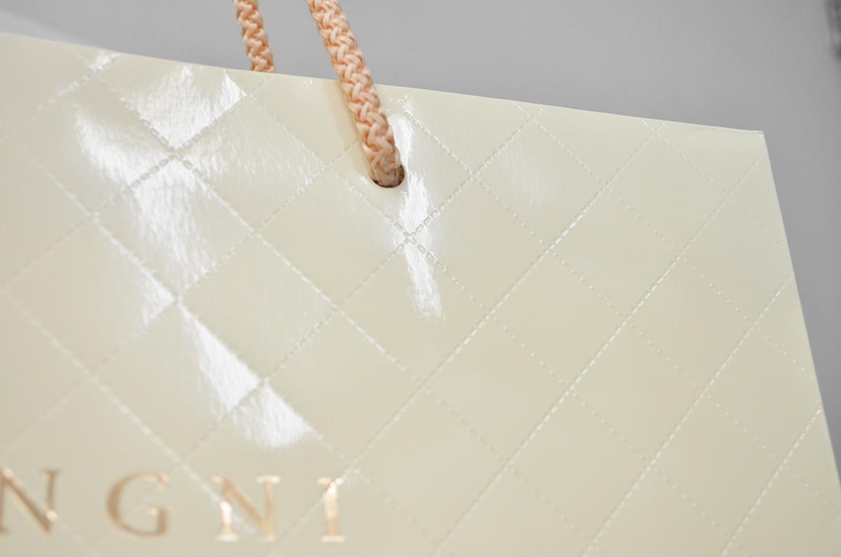 この紙袋には縫い目のようなエンボス加工が入っています。
