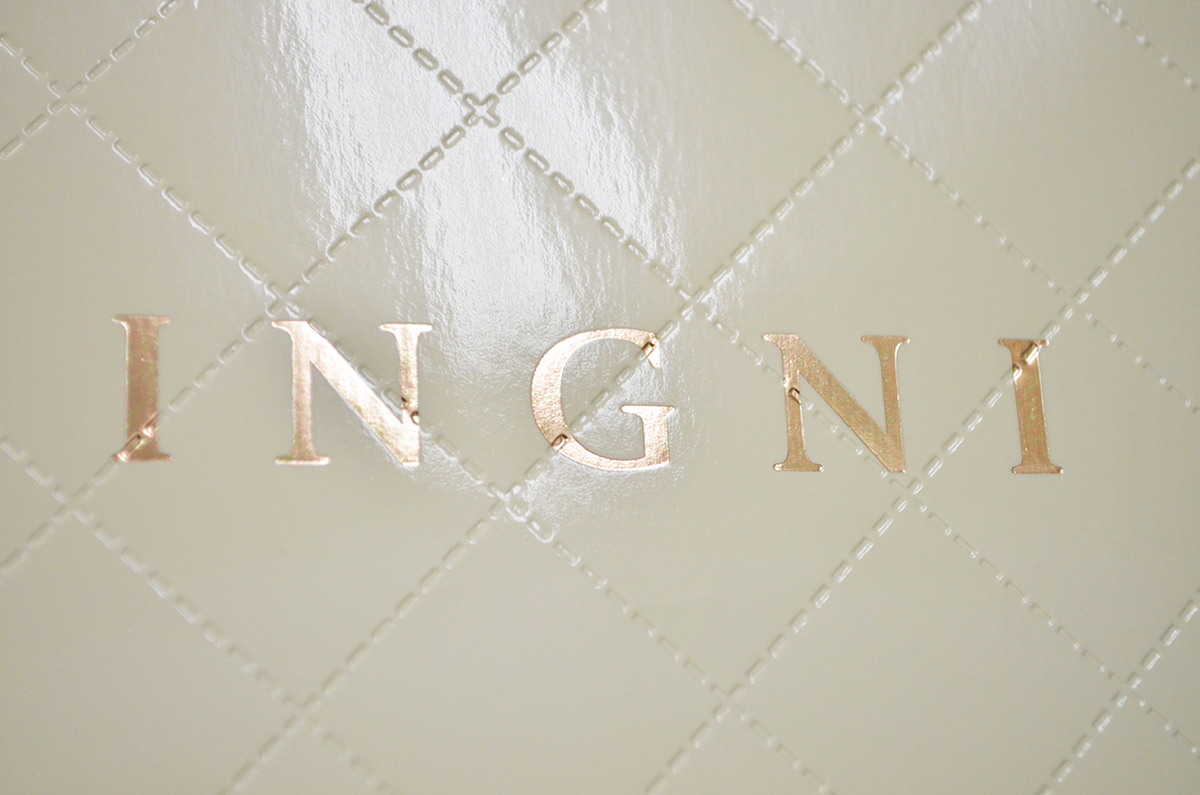ロゴはあまり主張しない大きさで金の箔押し加工。