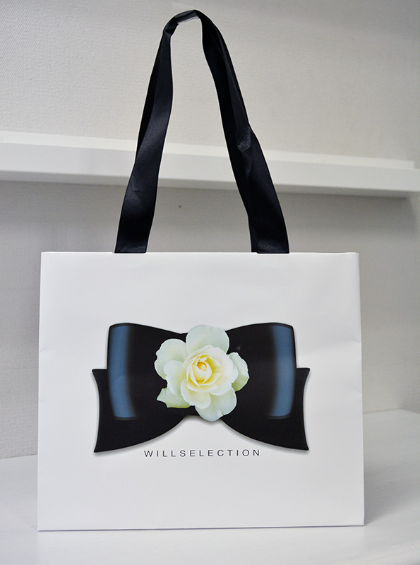 サテンリボン縦留め紙袋が近頃の一番人気!!2013年08月02日 こんにちはベリービーの芦谷です。 今日は近頃、一番人気の組み合わせをご紹介します。 その人気の組み合わせとは、 「サテンリボン」を「縦留め」にした紙袋です!! キュートなリボン模様のイラストとサテンリボンの組み合わせが素敵ですね。 少し、サテンリボンを長い目にするのがポイントですね。 どうしても通常の横留めにすると“もさもさ”した感じになりますが 縦留めにするとスッキリしたイメージとなりますね。 サテンリボンは弊社でも大人気の仕様ですので ぜひ、お問い合わせくださいね!!
