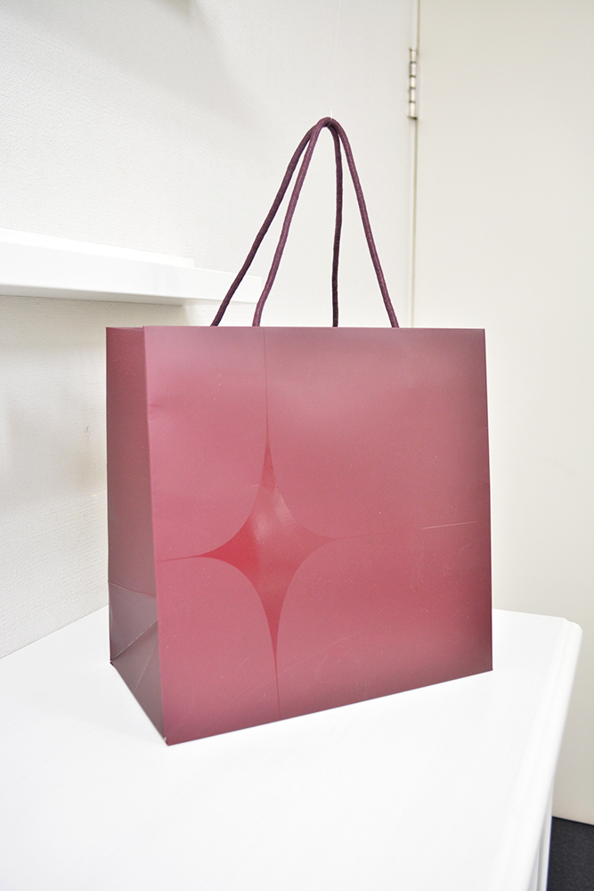 本日は落ち着いたエンジ色が素敵な紙袋です。