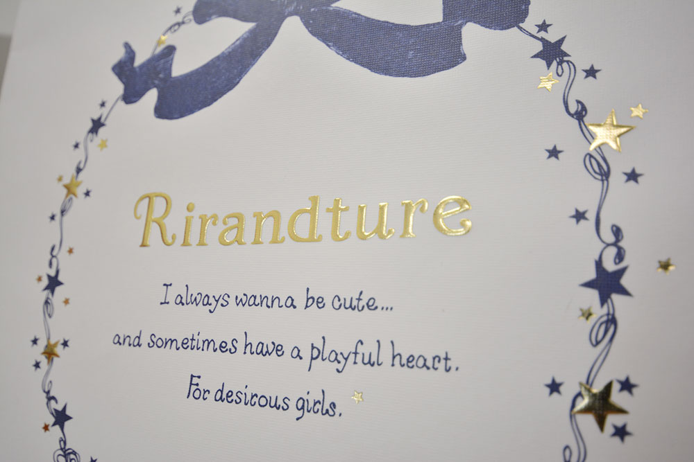 メッセージ。そして散らばるお星様とロゴが浮き出しの箔押しで入っています。