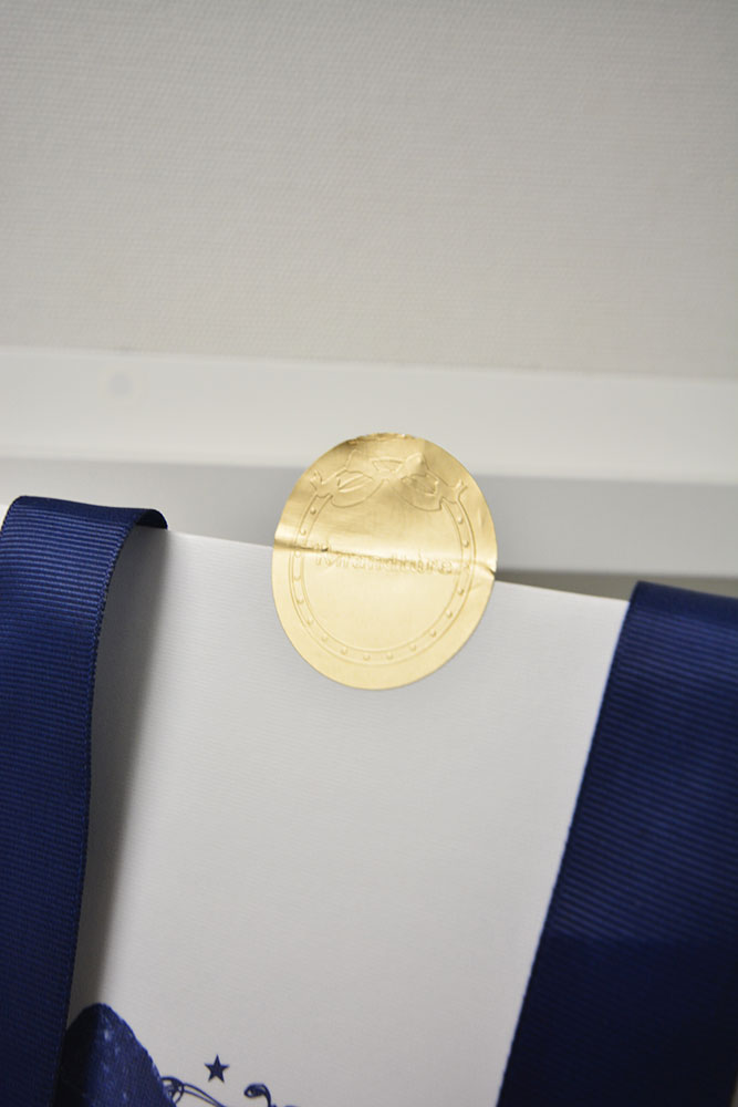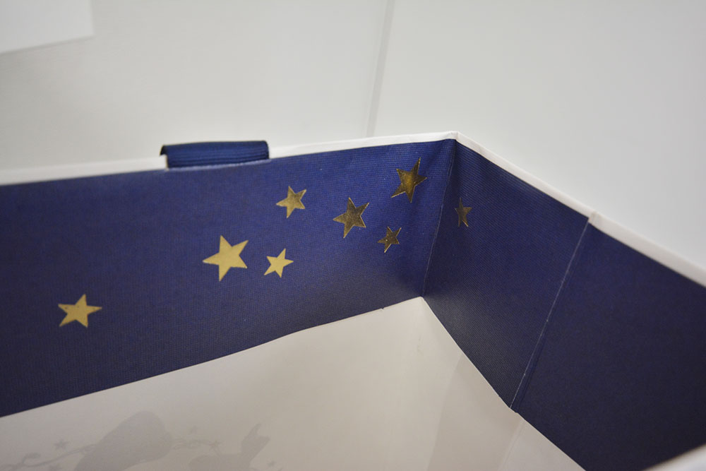 ここにもお星様の箔押しです。こちらは盛り上がっていない通常の平箔を使用しています。