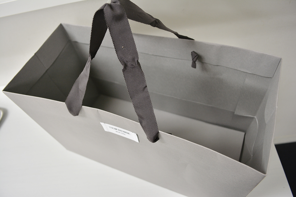 紙袋もまるで商品。タグの貼られた紙袋