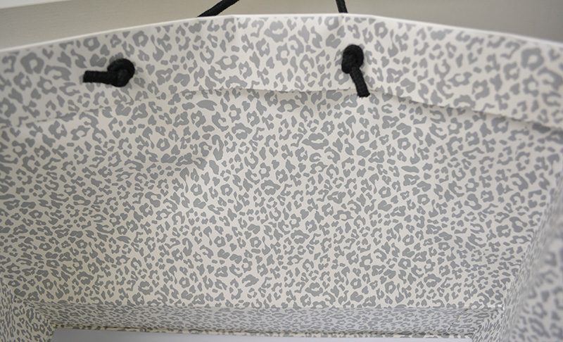 一見シンプルが今の流行!!2013年10月23日 こんにちはベリービーの芦谷です。 今日は近頃流行の一見シンプル!?タイプの紙袋をご紹介します。 白地にシンプルなロゴマーク。 近頃のナチュラル系によくあるパターンです。 ハンドルはシンプルなアクリルスピンドル。 ところが中面は… 大胆なレパードパターン!! しかし、下品にならず、とてもバランスのいい色使いがセンスを感じさせます。 今日は、今流行の表シンプル、中大胆な紙袋のご紹介でした。