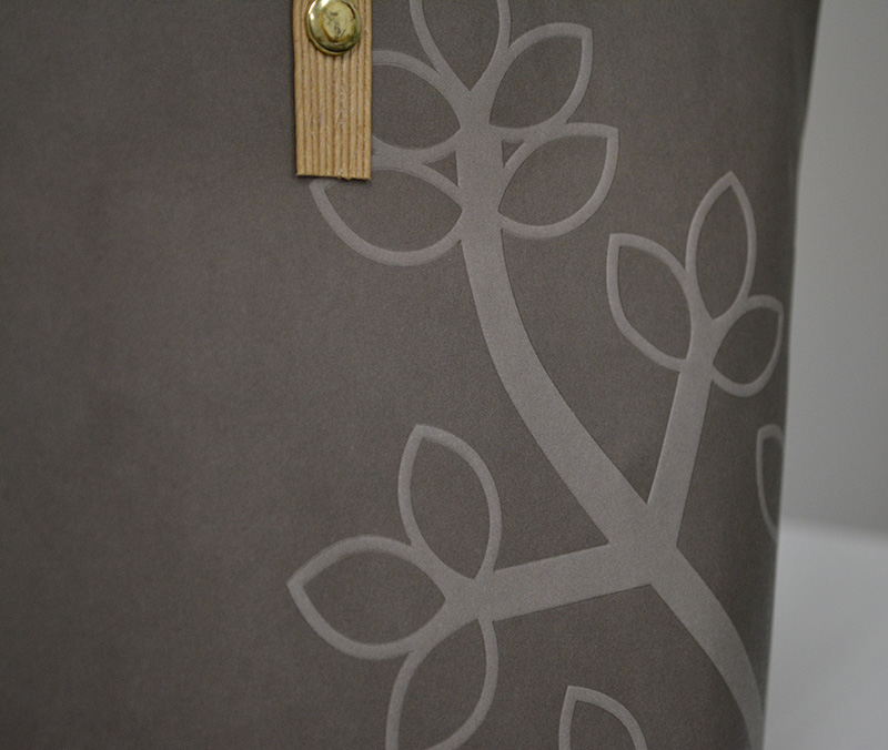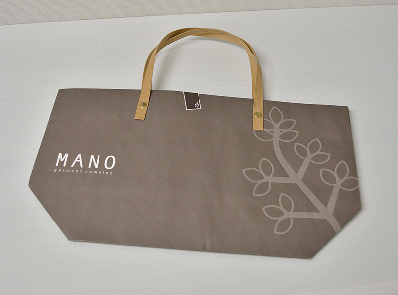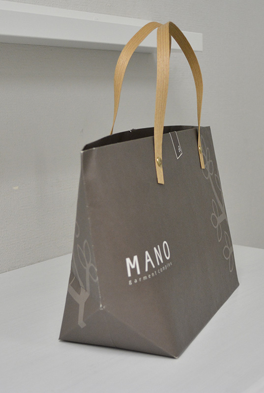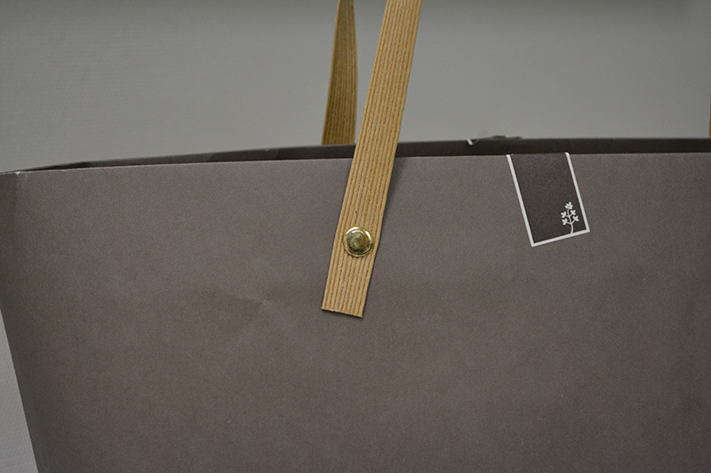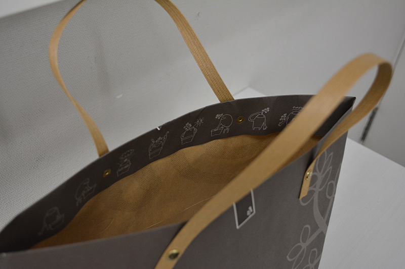 久しぶりに「船底」紙袋をご紹介します。2013年10月30日 こんにちはベリービーの芦谷です。 今日は久々に船底型の紙袋をご紹介します。 片面白色のクラフト紙でできた紙袋です。 サイドから見るとこんな感じ。 折りたたむとよくわかります。 表面には浮き出し加工でデザインにアクセントが付けられています。 紐はかわいく紙テープをリベット留めしています。 口折りにプリントされたイラストも紙袋のかわいらしさを演出するのに一役買っていますね。