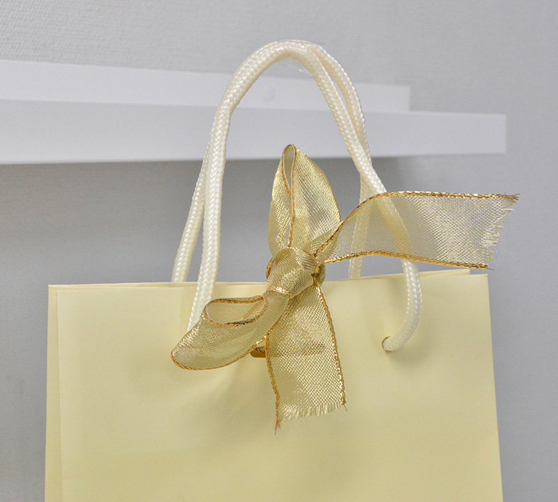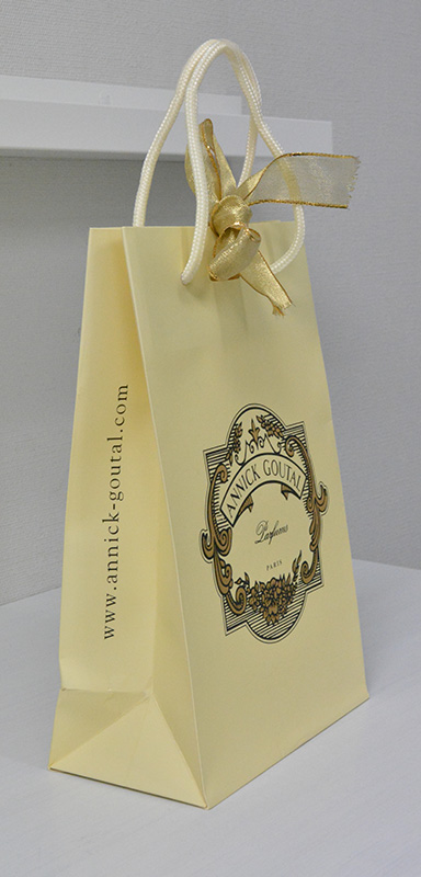 クラシカルな高級感が素敵な紙袋2013年11月08日 こんにちはベリービーの芦谷です。 今日はヨーロッパのクラシカルな魅力ただよう紙袋をご紹介します。 ロゴのデザインテイストと浮き出し箔のバランスが高級感を演出しています。 口折りに結ばれた硬い目のオーガンジーリボンのシャイニーな魅力は 女性らしさを 感じさせます。 クラシカルなデザインながらしっかりとサイドにURLを入れているところは レトロとハイテクのハーモニーですね。