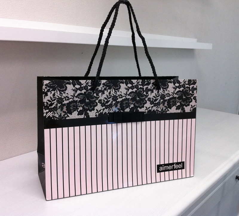 かわいいリボンのオリジナル紙袋印刷特集2011年06月29日 こんにちはベリービーの芦谷です。 今日からしばらくかわいいリボンの付いた オリジナル紙袋の特集をします。 今日はその第一弾です!! このオリジナル紙袋は袋に直接リボンが貼り付けられています。 印刷されたレースのイメージとリボンがとてもバランス良くマッチしています。 近頃のアパレルブランドはホームページのURLがプリントされているのが常識となっていますね。