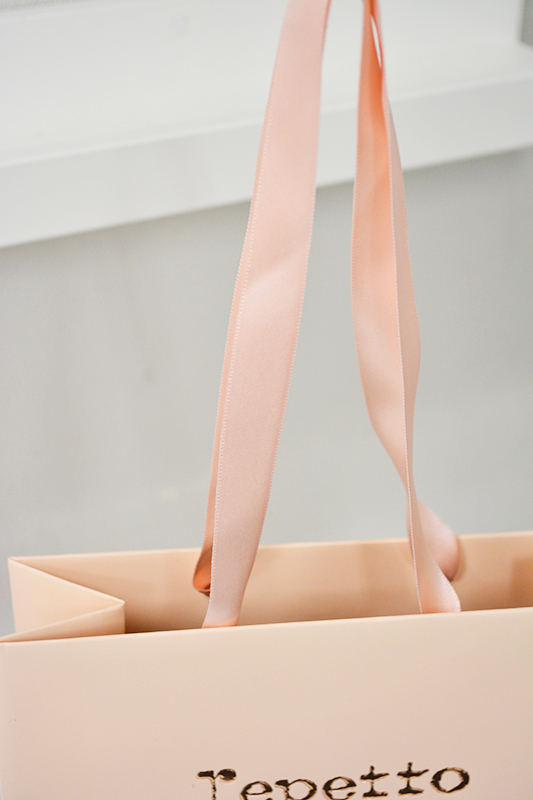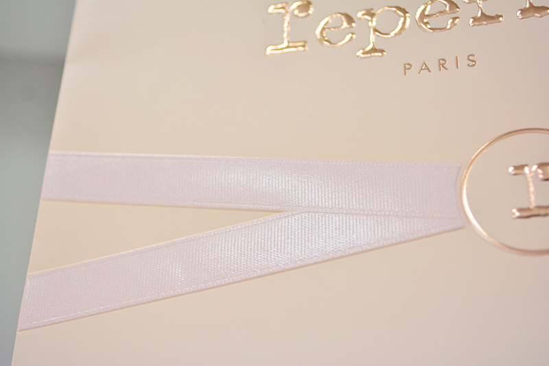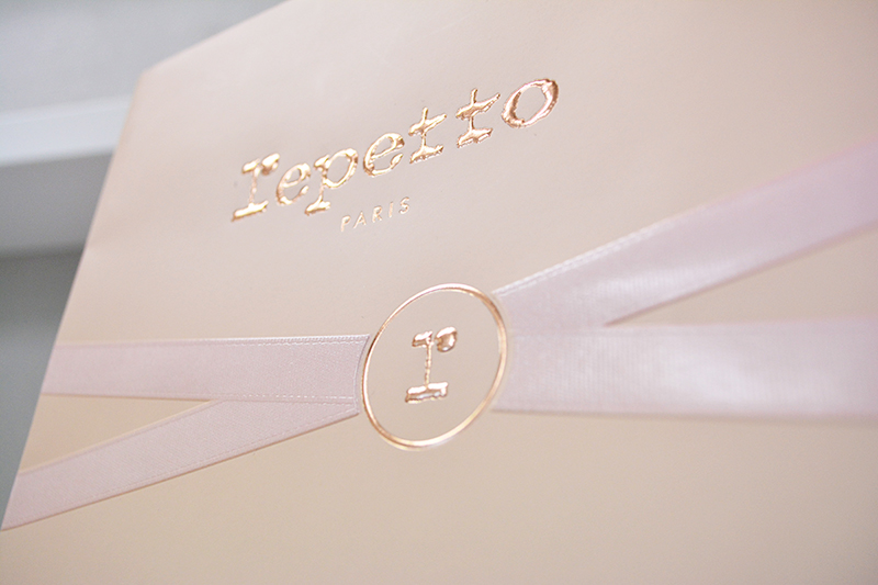 紙袋の表面にもあたかもグログランテープが巻き付けられているようなイメージを再現しています。