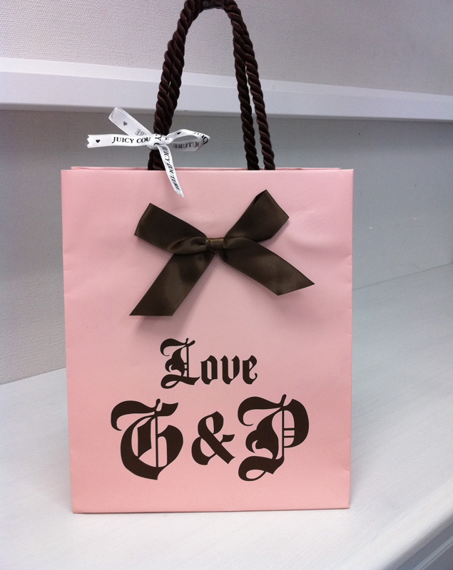 かわいいリボンのオリジナル紙袋印刷特集22011年07月01日 こんにちはベリービーの芦谷です。 今日もかわいいリボンのオリジナル紙袋のデザインをご紹介します。 この紙袋のデザインも近頃流行のリボンを強調したデザインです。 リボンがとってもかわいいですね。 サイドにもかわいいデザインです。 内側にはかわいいエンブレム。 リボンつかいのかわいいオリジナル紙袋でした。
