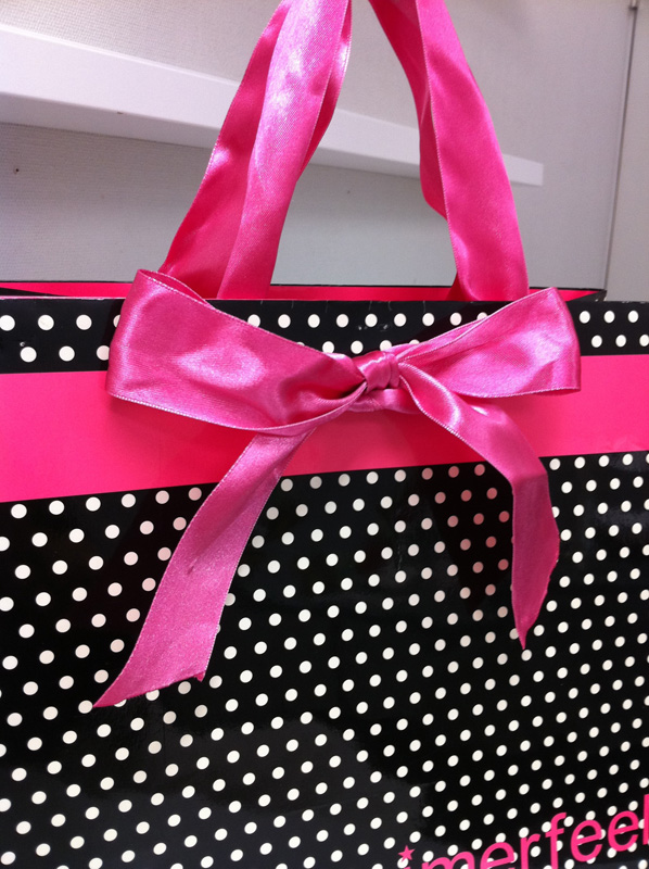 かわいいリボンのオリジナル紙袋印刷特集32011年07月01日 こんにちはベリービーの芦谷です。 本日もかわいいリボンの付いたオリジナル紙袋を ご紹介します。 大胆に大きなリボンを使って女の子らしさを強調した紙袋です。 紙袋一つ一つを手作業で結んでいかなければいけないので 気の遠くなるような作業ですが 海外生産ならではのワザでしょうね。 以前も書きましたが 最近のギャル系ブランドは紙袋の内側にこだわって必ず印刷されています。