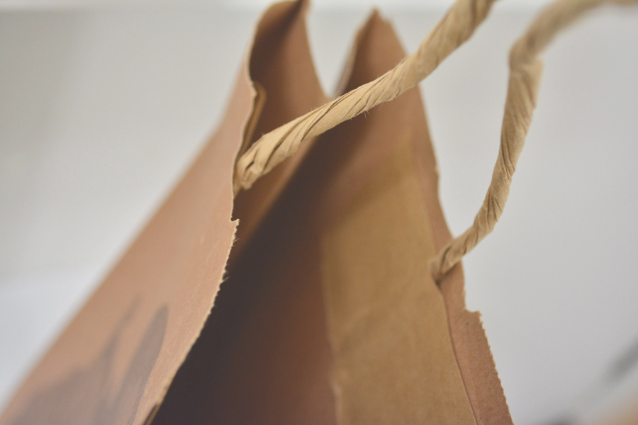 ハンドルは未晒クラフトでは一般的な紙三本です。