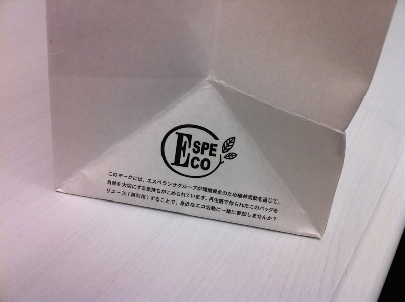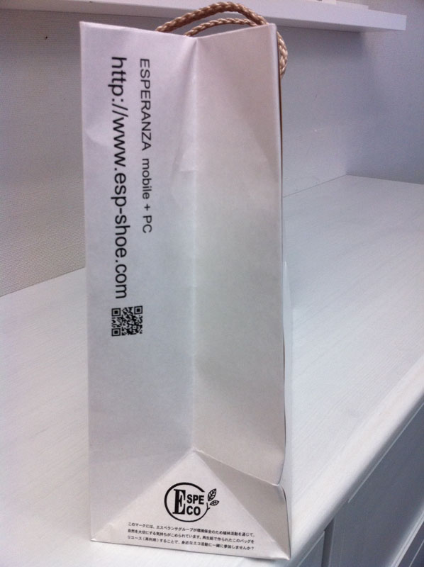 エコを意識したオリジナル紙袋2011年07月11日 こんにちはベリービーの芦谷です。 今日はブランドイメージにエコを取り入れた 素敵な紙袋をご紹介します。 一件、少しおとなしめな紙袋です。 しかし、側面を見ると エコペーパーを採用している証明が印刷されています。 内側を見ると一目瞭然です。 いろんなデザインを見てきましたが シンプルながらこの紙袋の素敵さを違った意味で感じさせられます。 なんだか未来的なブランディングのあり方かも知れませんね。
