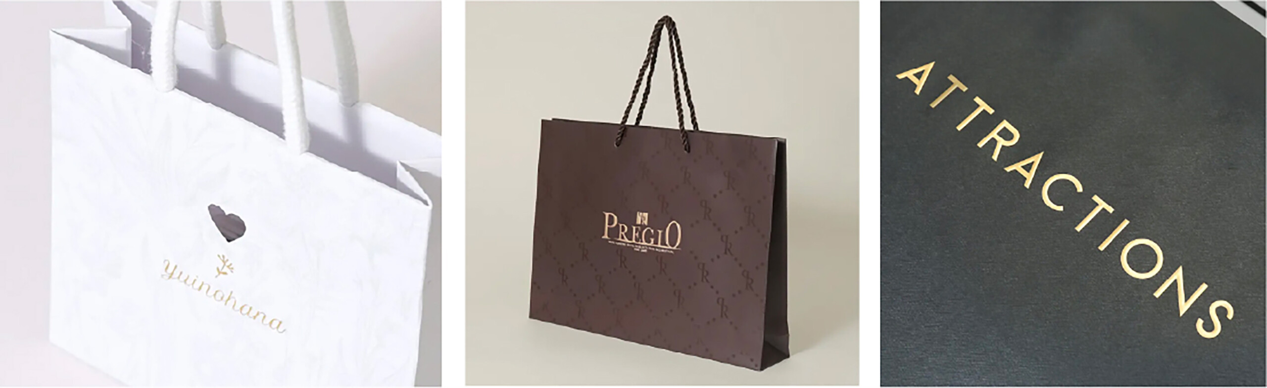 深みのある色合いのプレゼントバッグや紙袋にエンボス加工を施すことで、パッケージ全体に存在感が生まれ、特別感を強調することができます。