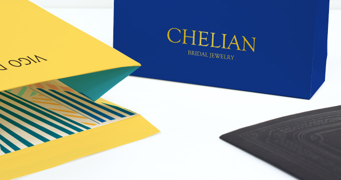 ハイブランドの紙袋で人気の高い、きらっと輝く「箔押し」でロゴを入れると高級感が出ますし、袋の内側に派手なプリントを入れたり、メッセージを入れたりするのもおすすめ。