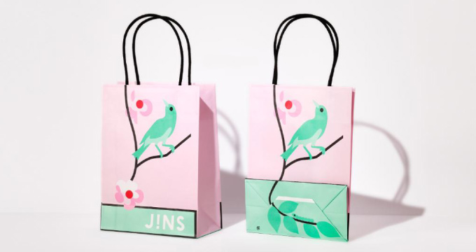 ハンドルが枝のイラストと連動していたり、紙袋の底を折りたたむとまた別のデザインに