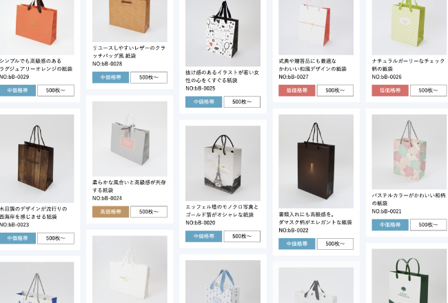 弊社のデザイナー陣が製作した紙袋デザインを無料で使用することができるので、簡単におしゃれな紙袋を製作することができます。