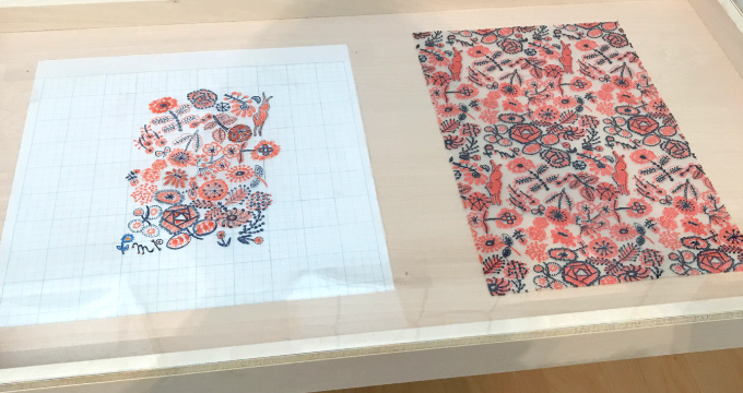 その原画と実際の生地を見比べることができる展示スペースもありました。