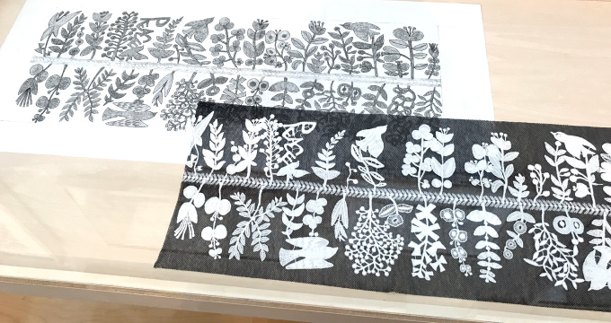 こんな細かい図案をテキスタイルにできる技術に圧倒されます。