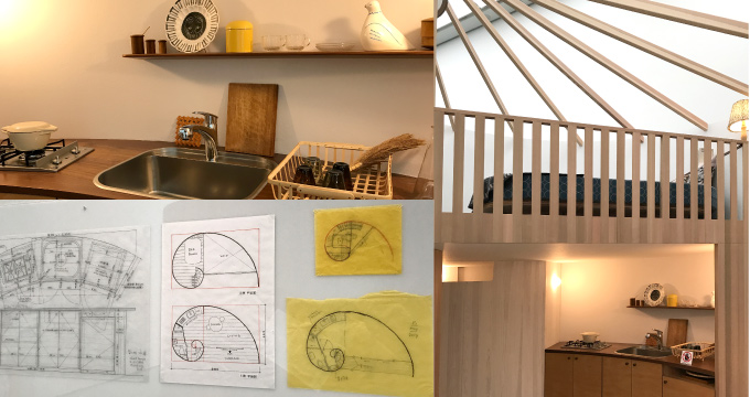フィボナッチ数列で構成されたもので、建物のなかにあるプロダクトもミナ ペルホネンのもの。