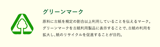 古紙を40%以上利用した製品であればグリーンマークを表示できます。