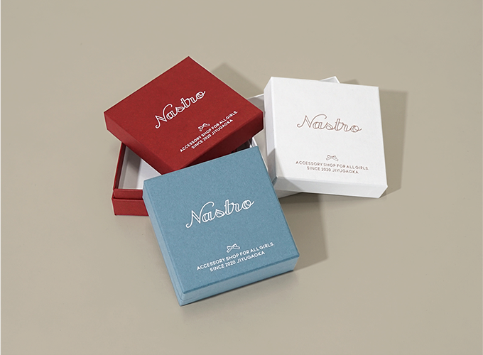ブランドものや高級品によく使われる貼り箱のサンプルということで、アクセサリーショップで使われるピアス等